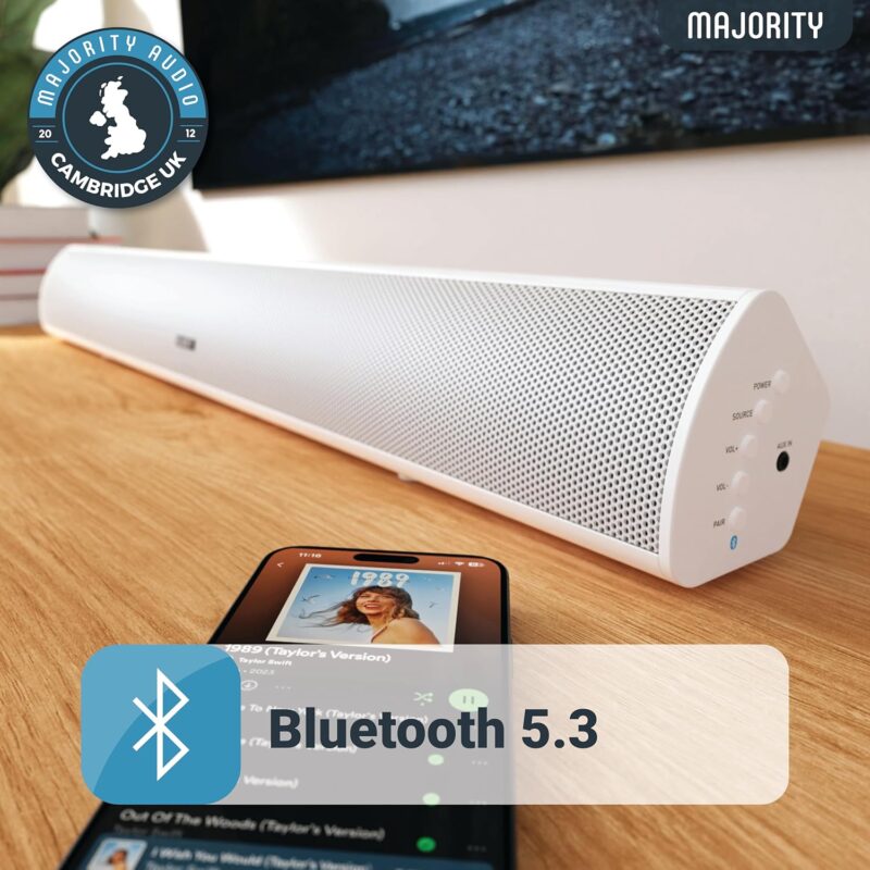 Majority Teton Sound Bar for TV | 120W Powerful Stereo 2.1 Channel Sound | Home Theatre 3D Soundbar with Built-in Subwoofer | HDMI ARC, Bluetooth, Optical, RCA, USB & AUX Playback and Remote Control