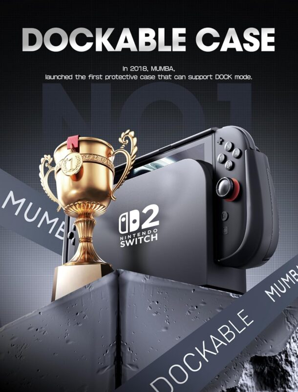 Mumba Dockable for Nintendo Switch 2 Case with Flip Stand, [Titan] Ergonomic Switch 2 Grip Protective Cover Holds 5 Game Cards & 2 TF Cards TPU Accessories and Quick-Release Joy-Con Design(Black)