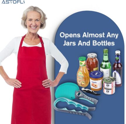 Jar Opener for Weak Hands, Seniors with Arthritis, 5 in 1 Multi Function Bottle Opener Lid Opener For Arthritic Hands with Non Slip Rubber Jar opener Gripper Pad