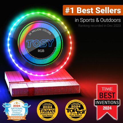 TOSY Flying Ring – 16 Million Color RGB or 12 LEDs, Super Bright, Lost Mode, Auto Light Up, Safe & Soft, Waterproof, Lightweight frisbee, Birthday, Camping Toy, Easter, Valentine Gift for Kid/Boy/Girl