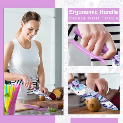 Astercook Paisley Pattern Knife Set with Cover, Dishwasher Safe Colorful Knives with 6 Knife Sheath, German Stainless Steel Rainbow Knife Set