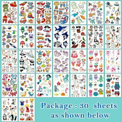 Partywind 380 Styles (30 Sheets) Luminous Tattoos for Kids, Mixed Styles Temporary Tattoos Stickers with Mermaid/Dinosaur/Outer Space/Pirate for Boys and Girls, Glow Party Supplies for Back to School