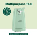 BELLA Electric Can Opener and Knife Sharpener, Multifunctional Jar and Bottle Opener with Removable Cutting Lever and Cord Storage, Stainless Steel Blade, Sage