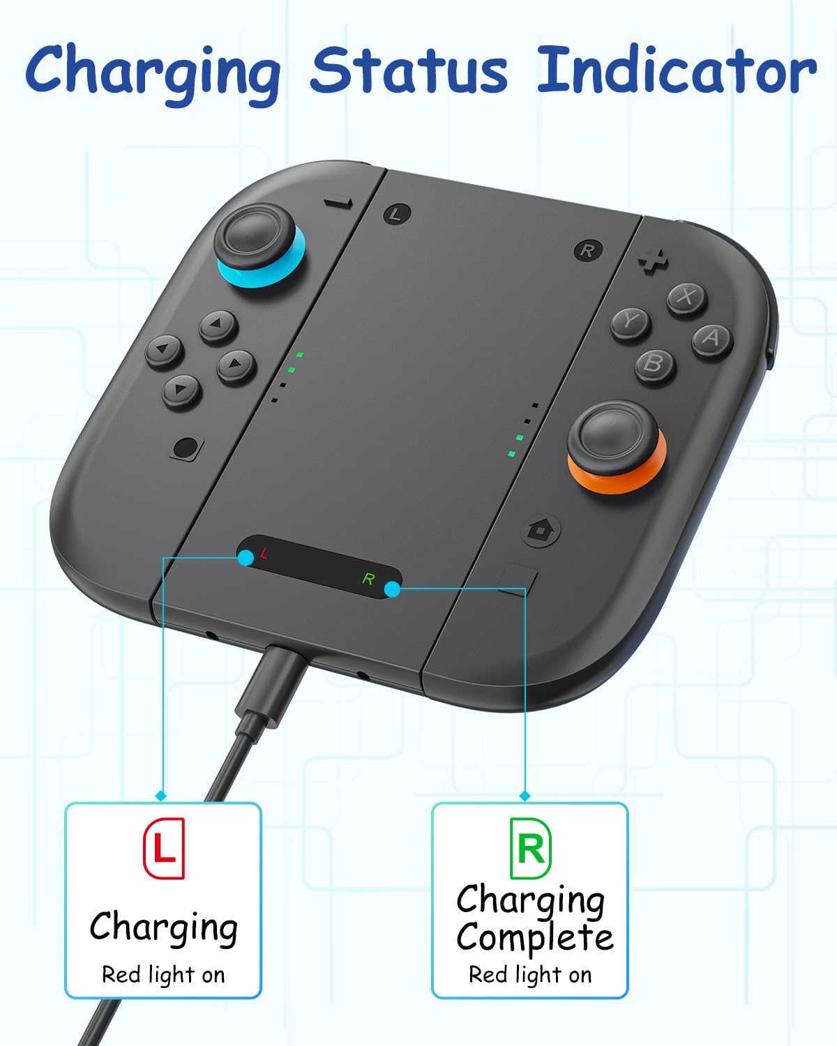 【Switch 2 Charging Status Indicator】Charging handle for Switch 2 J0ycon 2 comes with a separate LED light, the charging status is clear at a glance: red – charging / green – charging complete. Even while playing games, you can easily check the status of the Joycon 2 joystick with the LED light to avoid unnecessary charging or running out of power. (Note *: Recommended to use the original Switch 2 adapter)