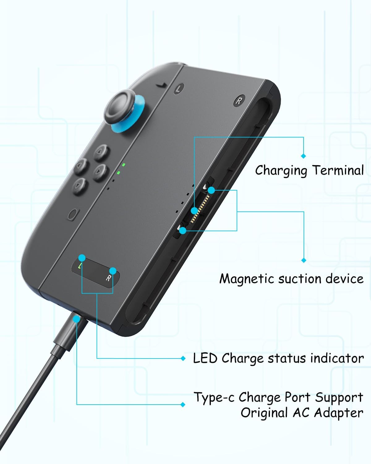 【For Switch 2 Joycon Safe Charging】:Charging handle for J0ycon 2 has a built-in charging smart chip that allows you to play games while charging. Provide over-current, overload, overheat, over-voltage and short circuit protection to ensure the device charging safety, will not damage the charging handle for J0ycon during the charging process. Automatic power off when fully charged, more peace of mind when sleeping at night!