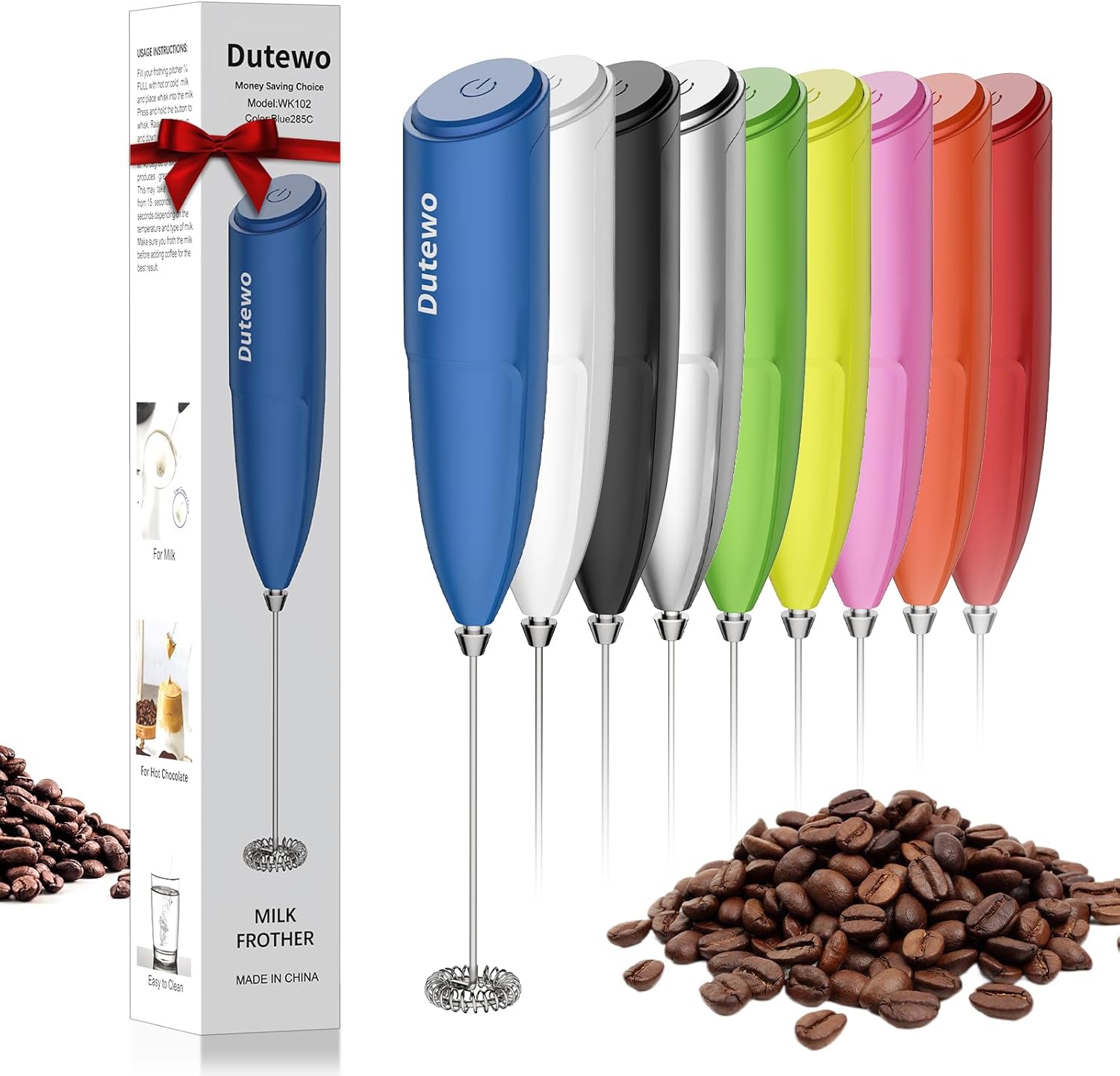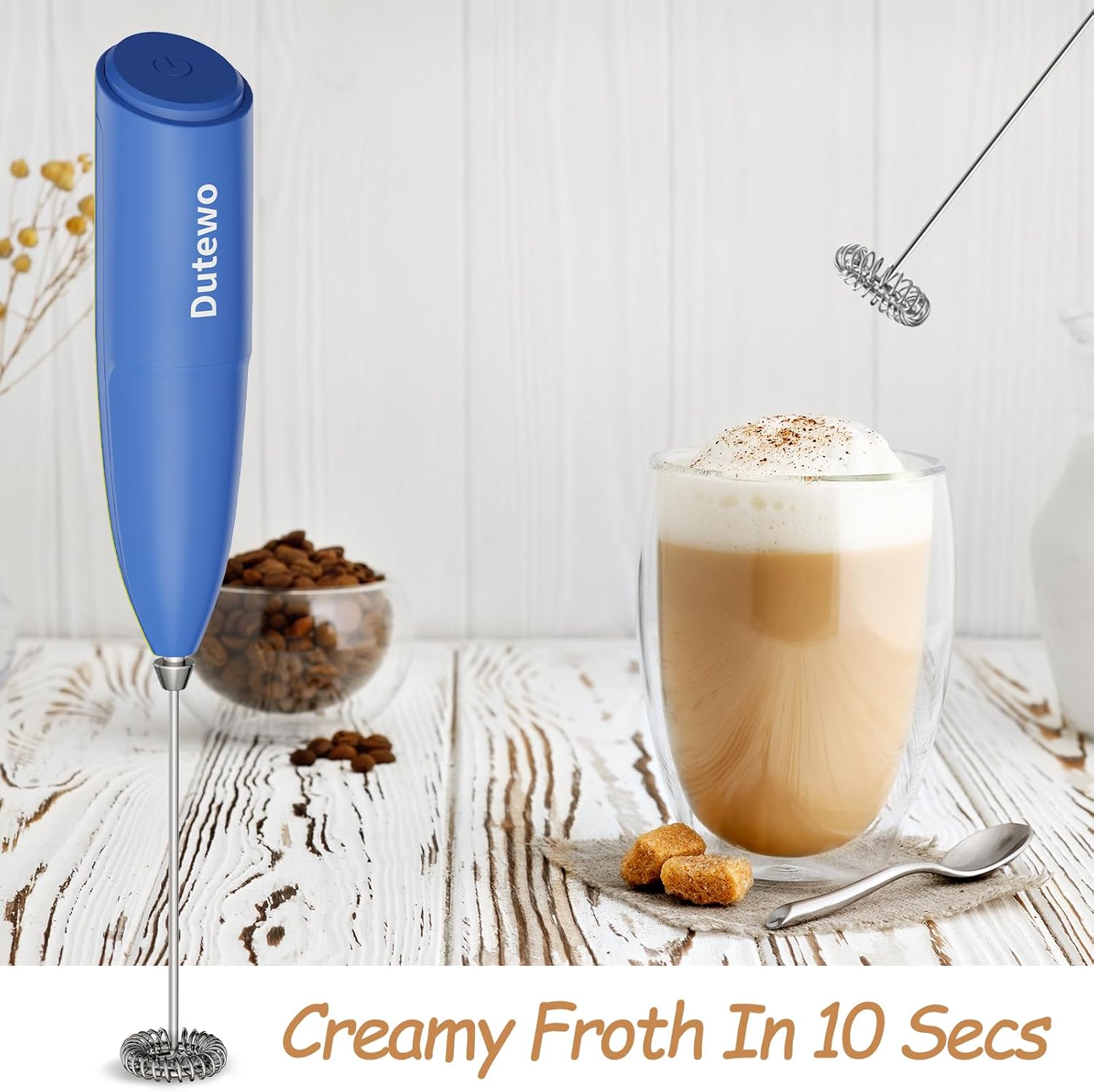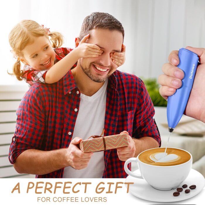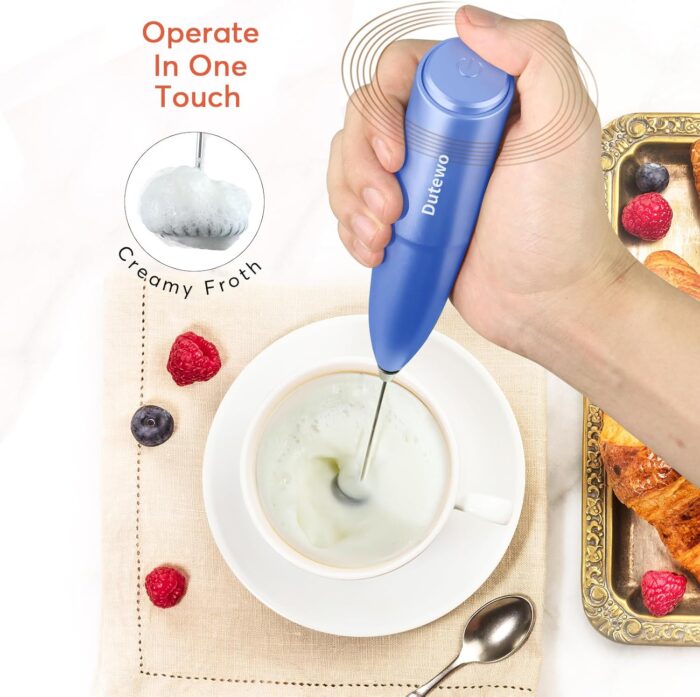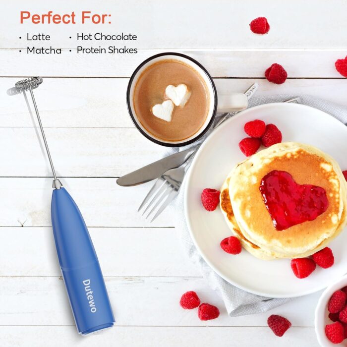 Hand Mixer Milk Frother for Coffee – Dutewo Frother Handheld Foam Maker for Lattes, Electric whisk Drink Mixer Mini Foamer for Cappuccino, Frappe, Matcha, Hot Chocolate, Blue 285C