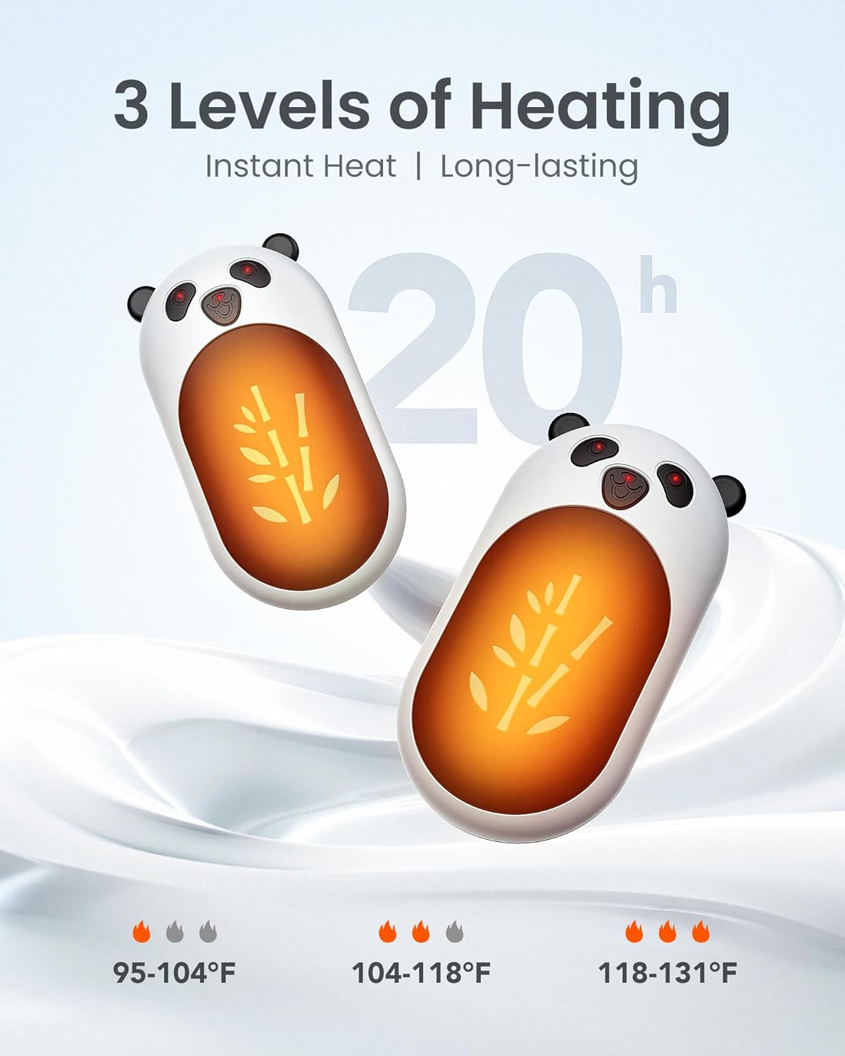 【20 Hrs*2 of Continuous Warmth】3 heating levels can be selected with just a simple button. Heats up to 130°F in just 2 seconds. The 3000mAh*2 capacity battery can last up to 20 Hours *2 of warmth