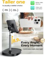 Ergonomic & Adjustable Design: Fight “text neck” and improve your posture with LISEN’s taller, photogenic phone stand. Designed for comfort, it offers an adjustable height (7.1in-8.5in) (1.4in adjustable range) and angle (5°-85°) best phone holder for video recording