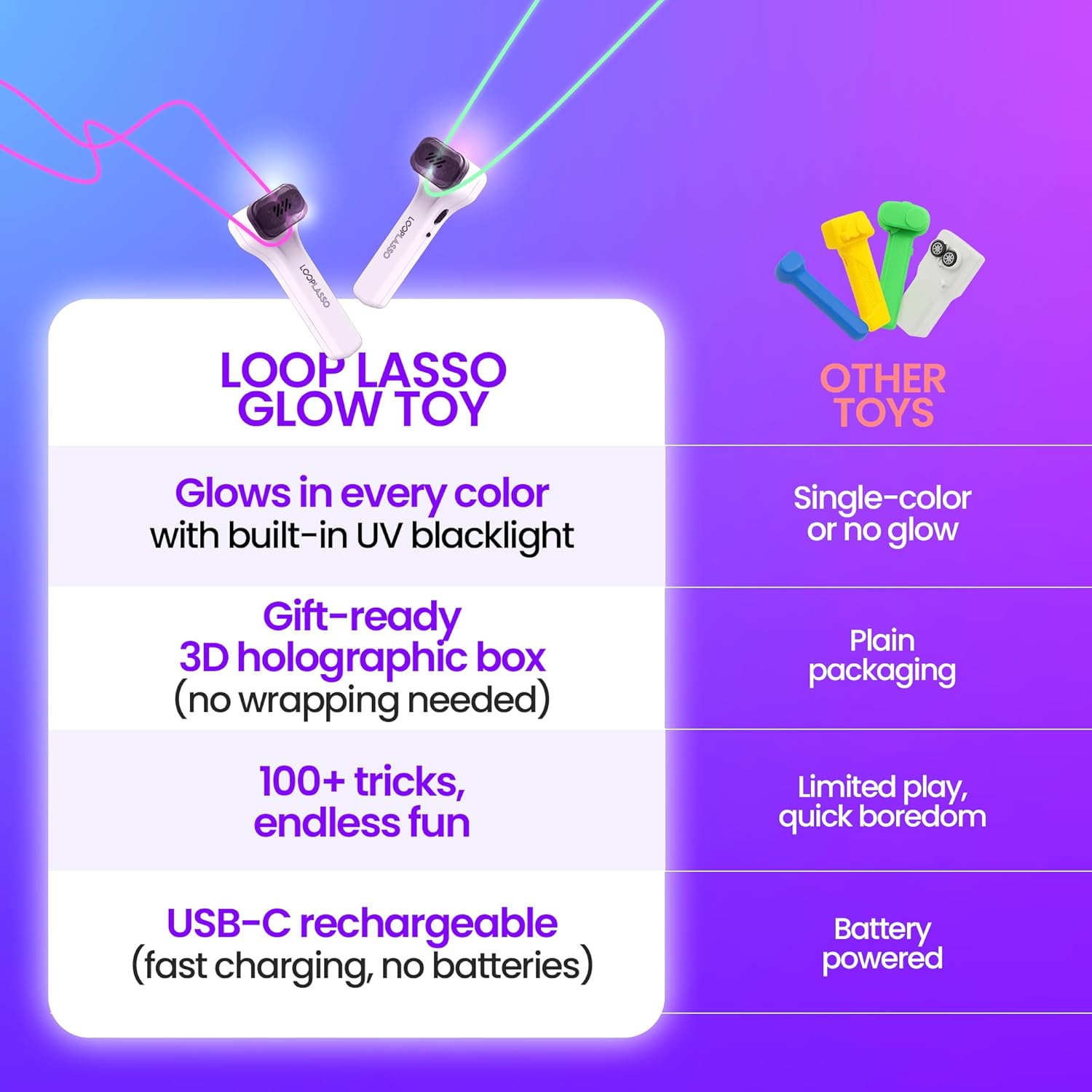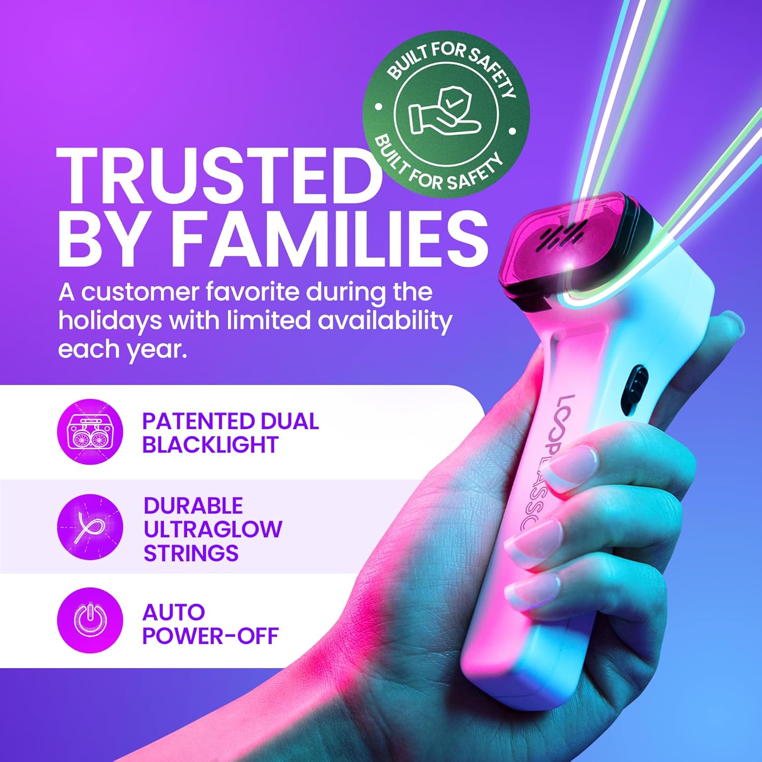Safe, Portable, & Rechargeable: Our Loop Lasso NANO features advanced safety protocols like Intelligent Power-Cutoff for worry-free play. Its pocket-sized design lets you easily pack it and go, and with USB-C fast charging – your Loop Lasso is always ready for action.