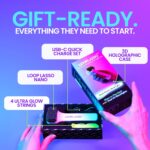 Loop Lasso NANO Glow in the Dark Rave Toys with Built-in UV Blacklight – Interactive Rope Launcher STEM Toy – Viral Flow and String Shooter Toy for Kids and Adults