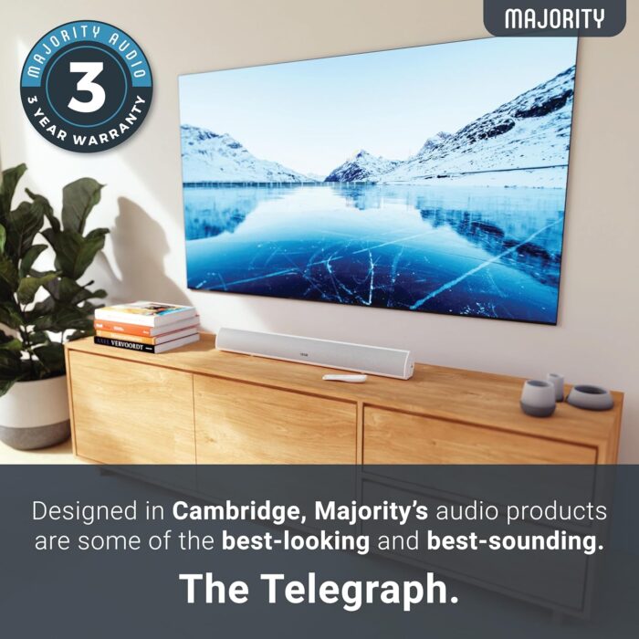 𝗖𝗥𝗬𝗦𝗧𝗔𝗟 𝗖𝗟𝗘𝗔𝗥 𝗦𝗢𝗨𝗡𝗗 𝗤𝗨𝗔𝗟𝗜𝗧𝗬: The Majority Teton is a powerful TV sound bar packed with the latest audio technology and compatible with a wide range of household items such as your phone, TV, PC, laptop, projector, monitor, Blu-Ray or DVD player. Feel true cinematic surround sound in your own home and enjoy an immersive listening experience when connecting via HDMI ARC, Optical or Bluetooth.