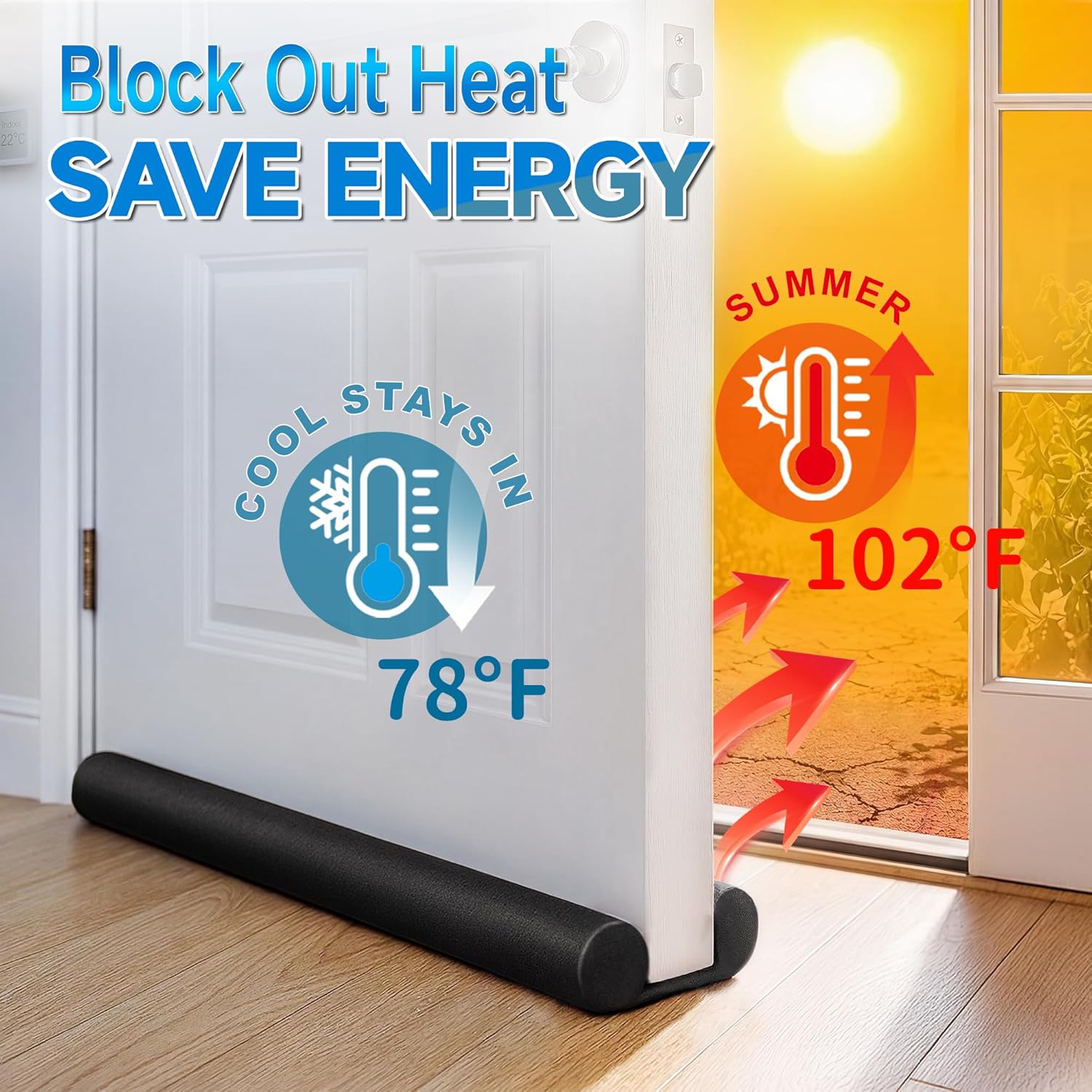 Adjustable & Easy to Install: The size of door draft blocker is 36″. It can also cut foam to fit 30″ 32″ 34″ doors. Just adjust the length and slide under the door