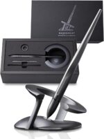 Futuristic Functionality: The pen’s magnetic feature allows it to spin on its pedestal, providing a fidgeting tool to boost focus and creativity.