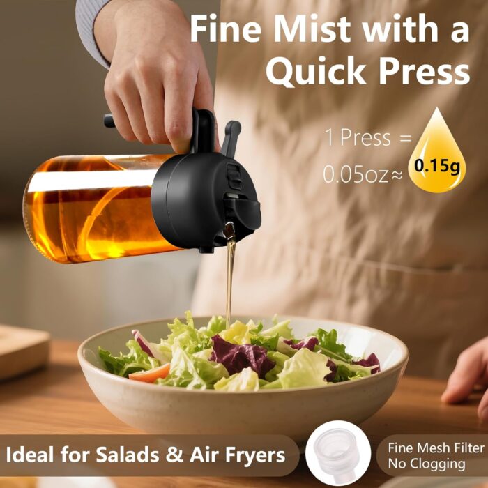 Glass Oil Dispenser/Pour & Sprayr Bottle for Air Fryer, Salad, BBQ