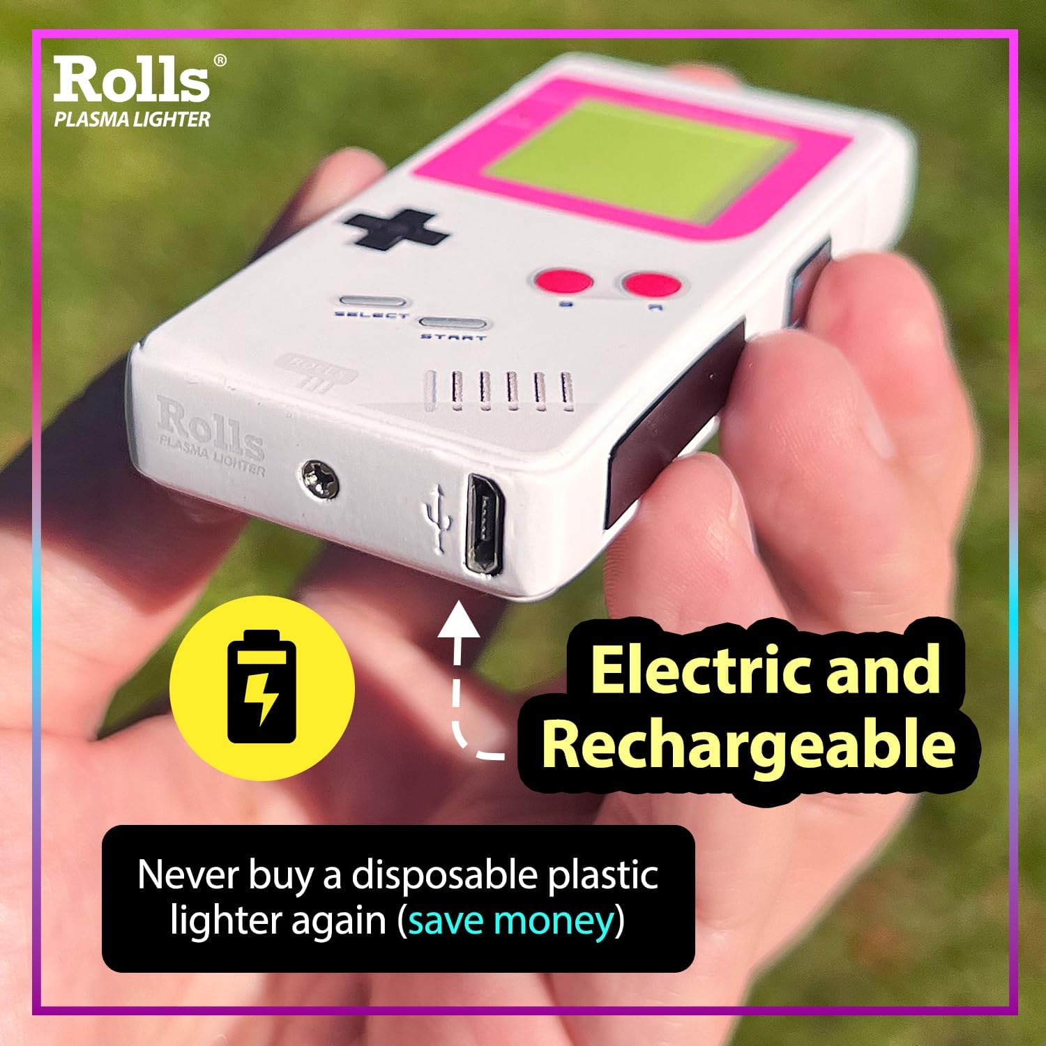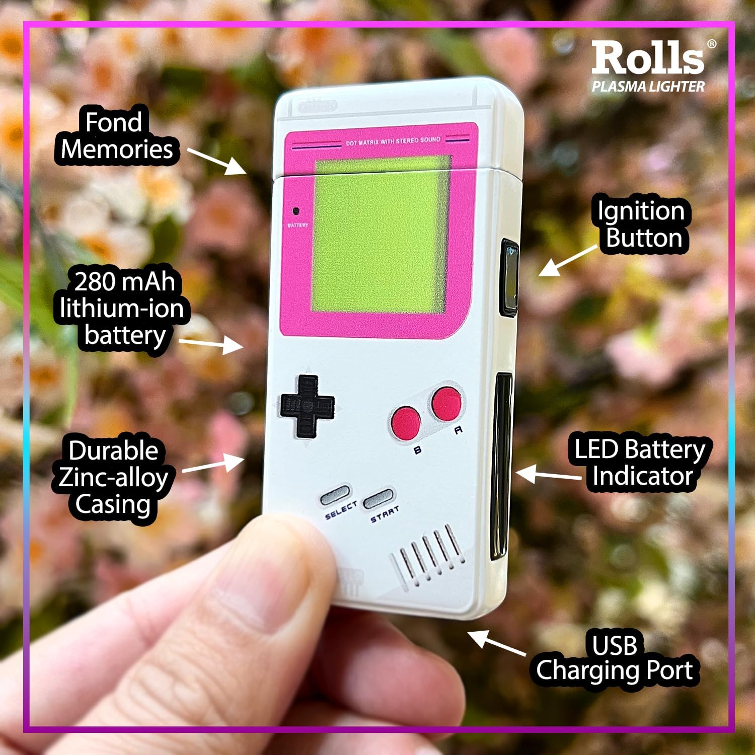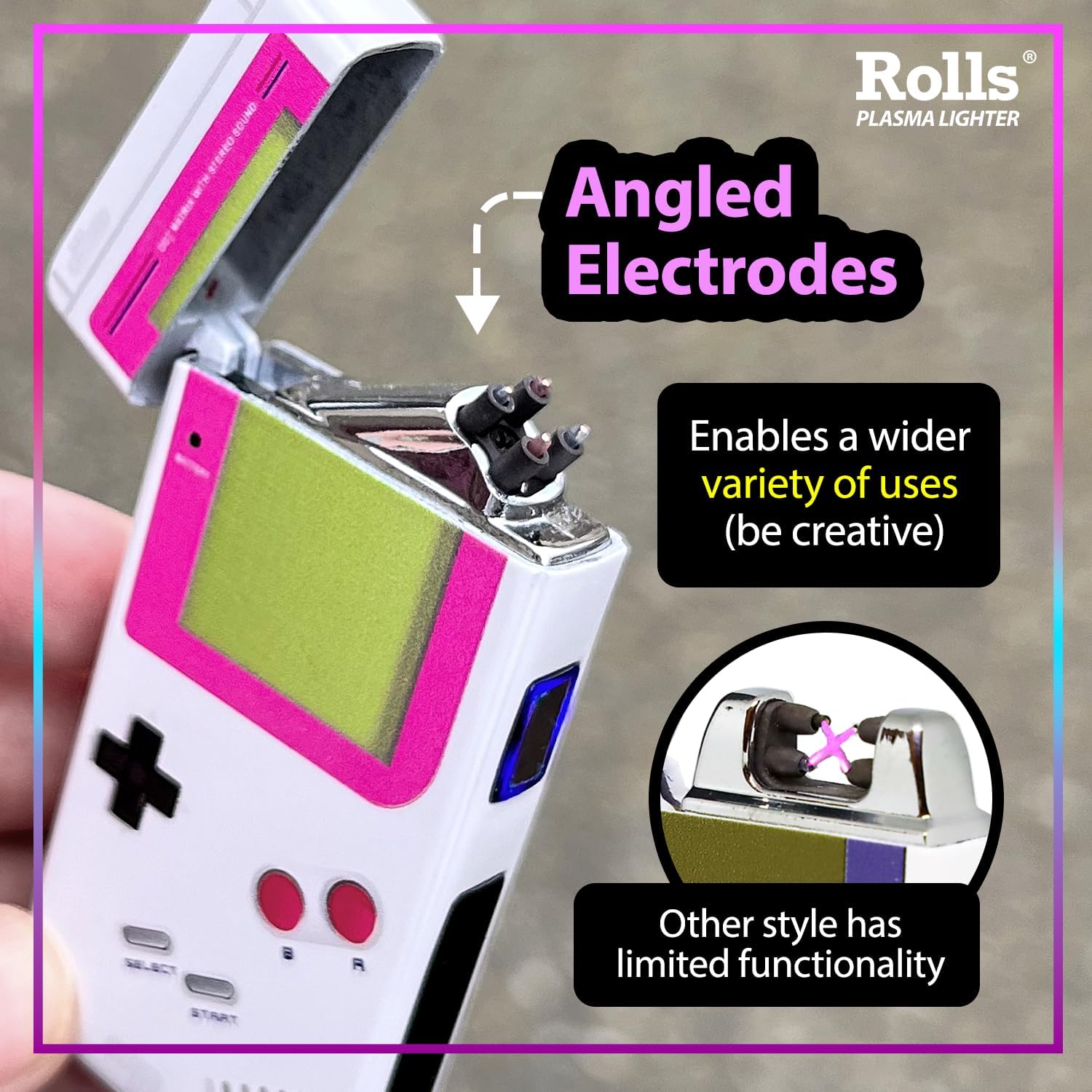 Rolls Electric Lighter – Cute Lighters – Gifts for Women – Birthday Gifts for Women – Cool Gadgets – Retro Gamer Custom Unique Stocking Stuffers – by Rolls Plasma Lighter (Pink)