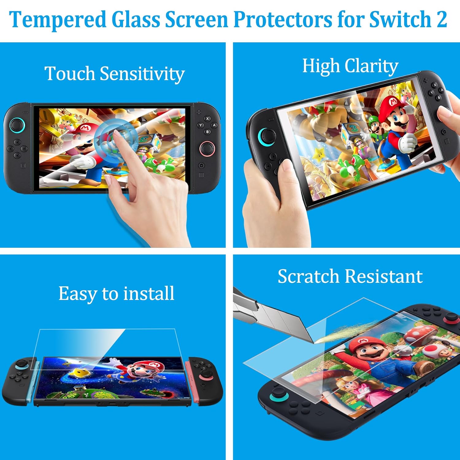 Fully Protection: Premium Carrying Case, Protective Covers and Tempered Glass Screen Protector offer full protection around switch 2 from everyday bumps, scratches, dust and fingerprints.