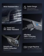 Crystal-Clear Calls – Strategically positioned dual wind-resistant microphones and an AI noise reduction algorithm filter out 96.5% of background noise, including wind at speeds of up to 15 miles per hour.