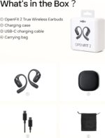 SHOKZ OpenFit 2 Open-Ear Headphones,True Wireless Bluetooth Earphones with Microphone,Earhook Earbuds with 48 Hours of Playtime,Fast Charging,IP55 Water-Resistant,with Carrying Bag,Black,Bluetooth5.4