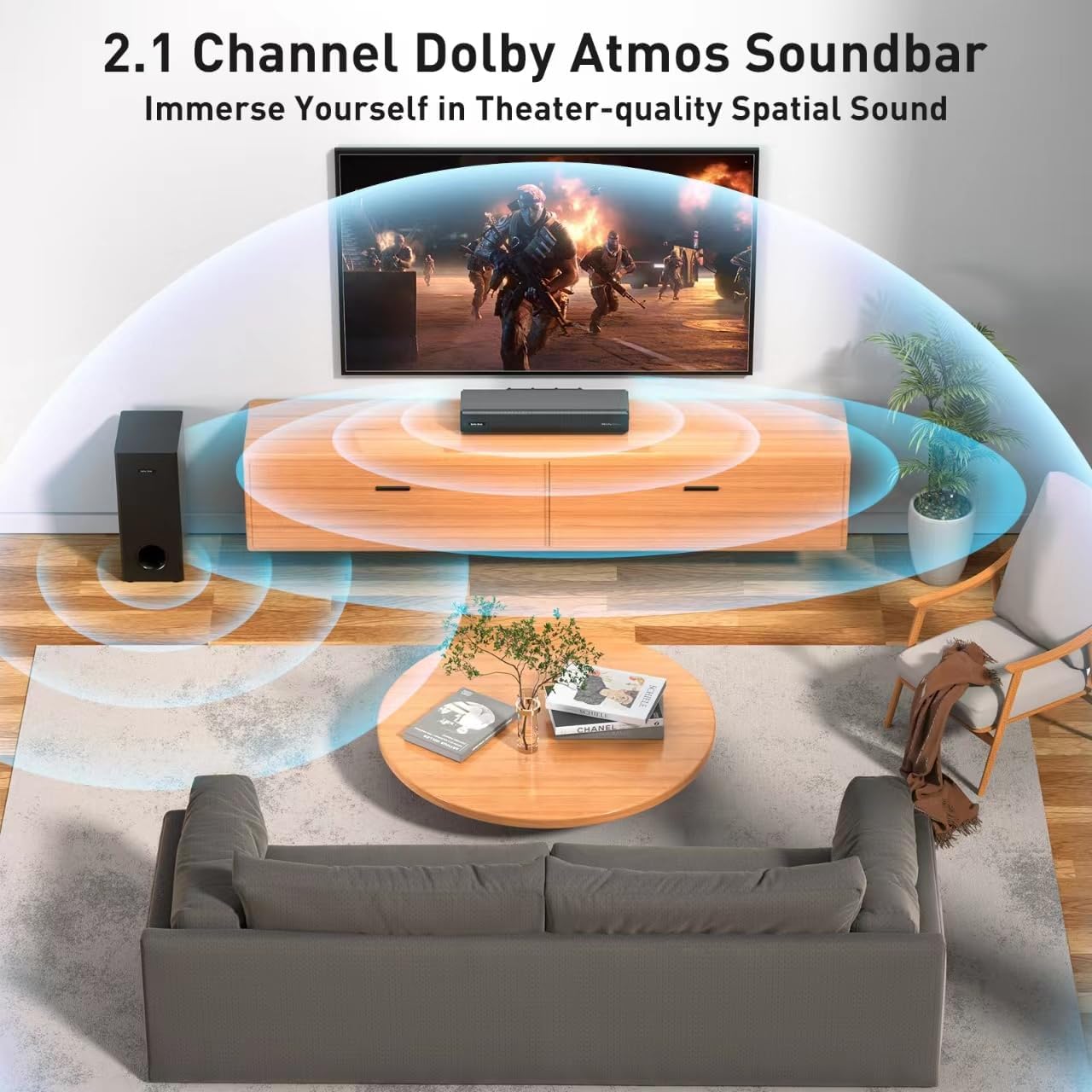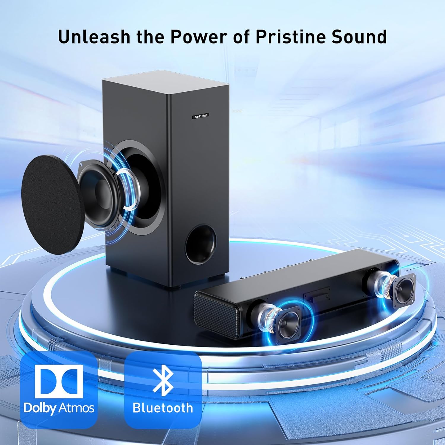 Sonic Blast Sound Bar with subwoofer for Smart TV Dolby Atmos 2.1CH Wireless Bluetooth 3D Surround Sound Soundbar Deep Bass Adjustable Home Theater Surround System TV Speaker Works with 4K & HD TV