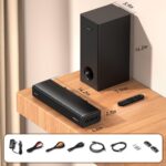 Wireless or Wired Connection, Easy Setup: The soundbar can be connected to any Bluetooth enabled devices such as computers, smart phones, tablets and so on. It is also super easy to set up the soundbar with TV via Optical, HDMI, Coa cable. The sound bar is also wall mountable with included wall mounting kit.