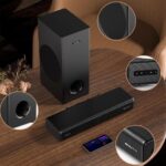 Deep Bass with Dedicated Wired Subwoofer: Rich bass from our new generation sound bar and subwoofer will activate every cell in your body. The large cavity space of the subwoofer makes the bass full of magnetic. Surrounding bass from the external subwoofer creates a realistic and 3D feeling as if you are in the movie, music and gaming.