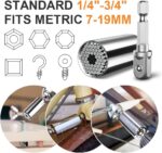 Clever and Useful Tools Ever: Universal socket grip is equipped with power drill adapter, easy connect with most electric drills, electric screwdrivers and manual ratchet set. The brilliant universal socket instantly adjust to grip most metric, wing nuts, broken nuts, stripped nuts, eye bolts, square nuts, hexes and most irregular shape. This magic socket is must have all in one tool for both the professional and the average person. Great addition to your toolbox, cool gift for men and family