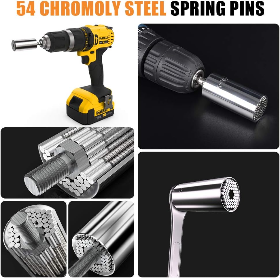 The Unique Tools for Men Women: Constructed from 54 chrome vanadium steel, the universal socket is tough enough to get the job done, move to different types of fasteners without every changing sockets. A man who works hard for home improvement deserves this practical universal socket. Perfect tools for home improvement, carpentry tools, auto repair, household maintenance, construction, home renovations, house remodels, drill accessories, woodwork and other DIY projects