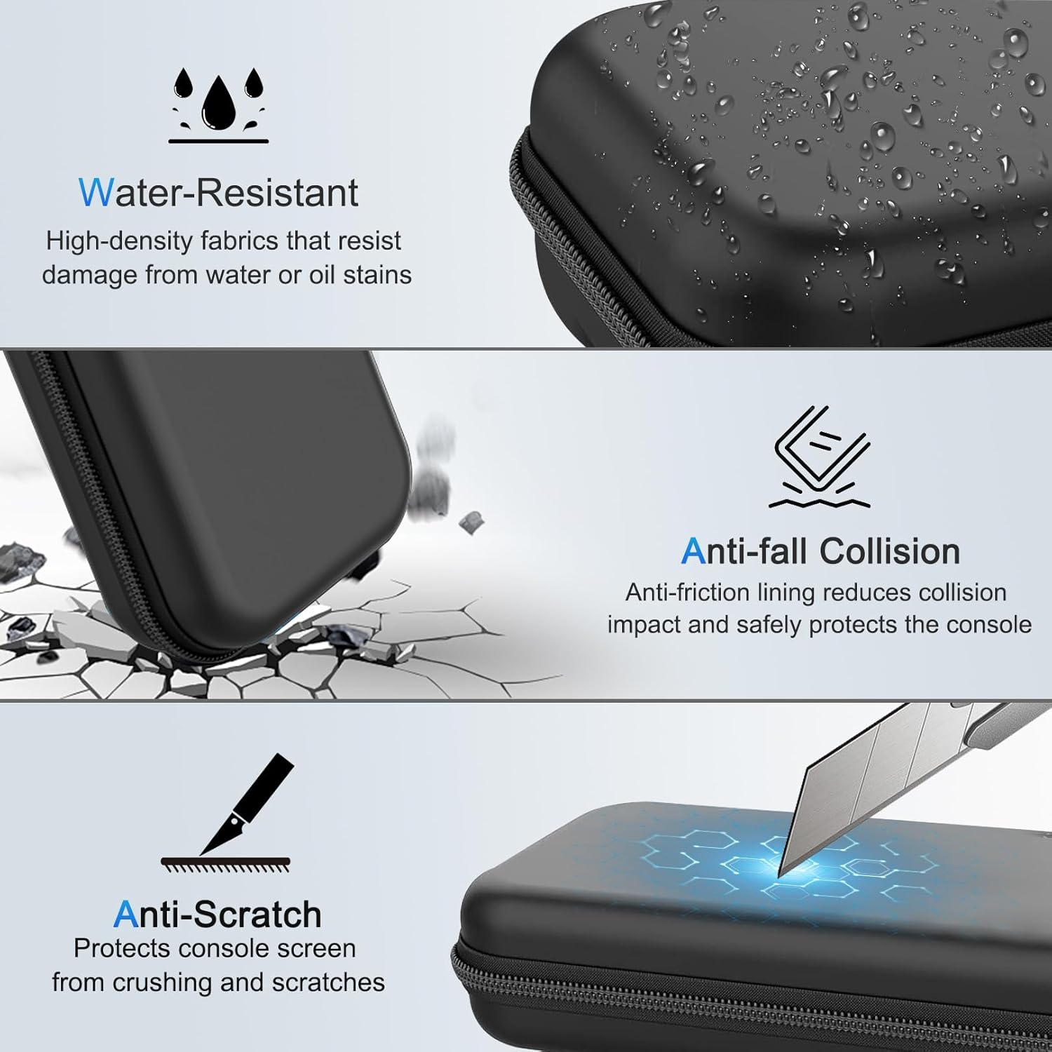 Exquisite Workmanship and Soft Lining: Smooth double zippers, you can open/close case easily. Comfortable and soft silicone non-slip hand strap, easy to carry. This textured suitcase is easy to clean and wipe off marks or dust from the exterior. Ultra-soft lining with an inner pocket that sits underneath the entrance and not against the screen. Prevents squeezing or scratching the game screen.